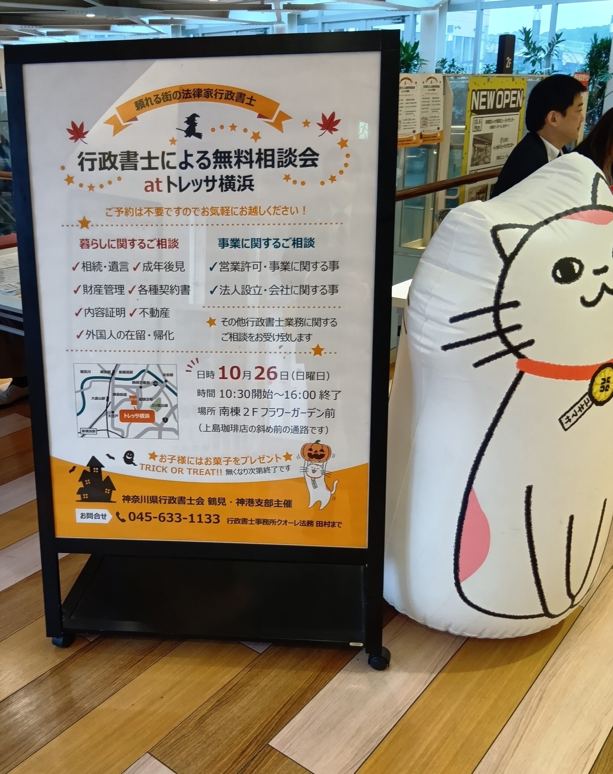 10月26日にトレッサ横浜で開催された、行政書士による無料相談会@トレッサ横浜に参加させていただきました。