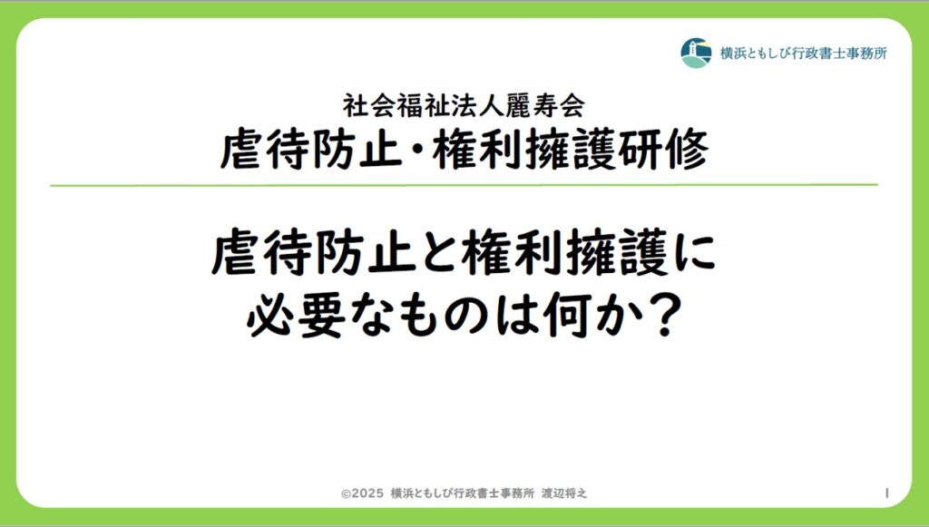 虐待防止と権利擁護の研修講師を務めました(社会福祉法人麗寿会様)