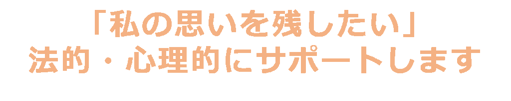 「思っていることを人に伝える」のは意外と難しいものです。遺言は自分の思いを大切な人に残すためのしくみ。それなのにあなたの思いがきちんと伝わらなければ、せっかくのしくみも宝の持ち腐れです。当事務所代表は行政書士と社会福祉士の資格を持ち、福祉の現場で17年間さまざまな困りごと解決のお手伝いをしてきました。支援の第一歩は「困っている人の話をしっかり聞くこと」。この信念であなたの思いをしっかりと受け止めてサポートします。